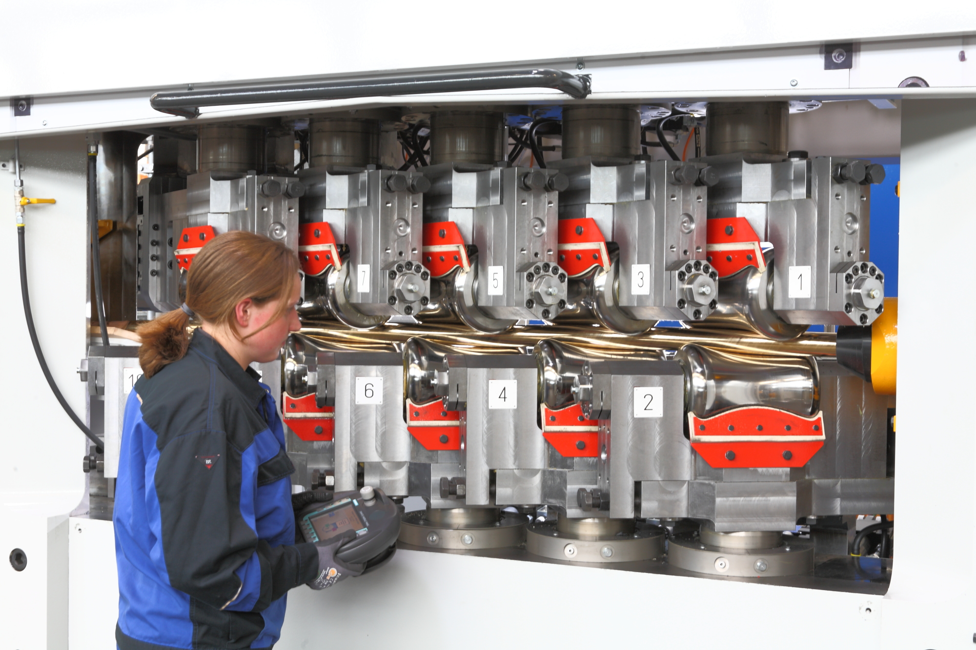 Es kommen 10-Walzen-Richtmaschinen zum Einsatz, die sowohl ein großes Durchmesserspektrum, als auch hohe Richtgenauigkeiten abdecken können.